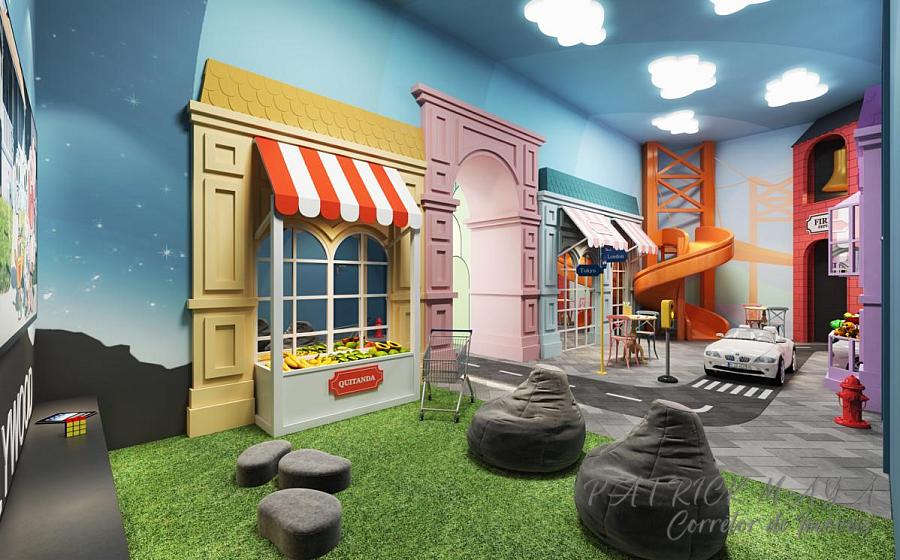 • Área de gestão e apoio condominal com sala de administração, área para funcionários (cozinha, vestiários, banheiros), área de serviço e bicicletário