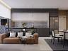 - Living integrado à sala de jantar e cozinha americana, criando um espaço acolhedor e moderno;