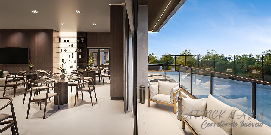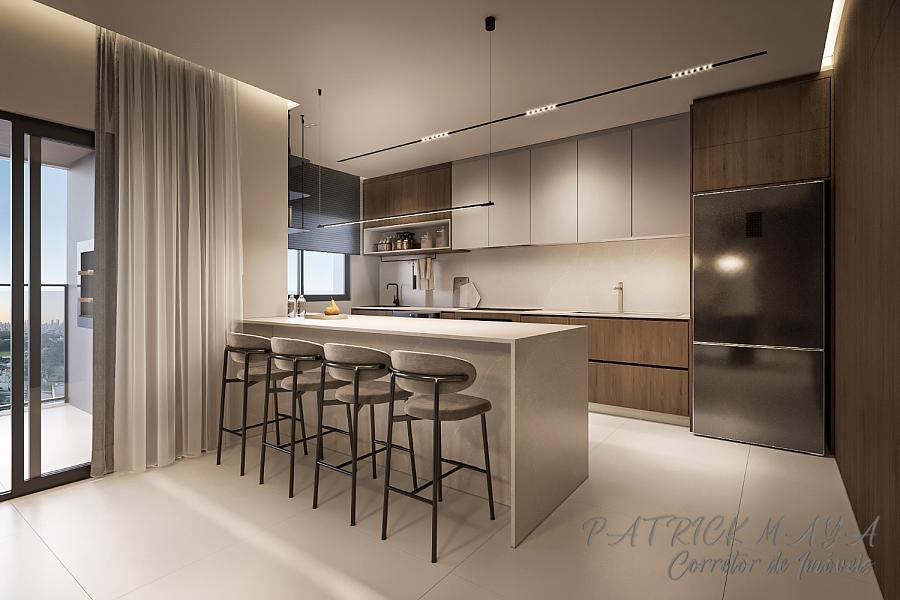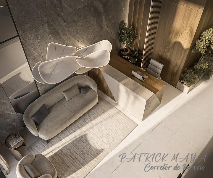 O acabamento é de alto padrão, com revestimento em porcelanato, teto em gesso, churrasqueira privativa, lavabo, closet e sacada integrada aos ambientes de estar e jantar. Conta ainda com infraestrutura para água quente, aquecimento a gás, espera para split, gás e hidrômetro individualizados e fechadura com senha na porta de entrada.